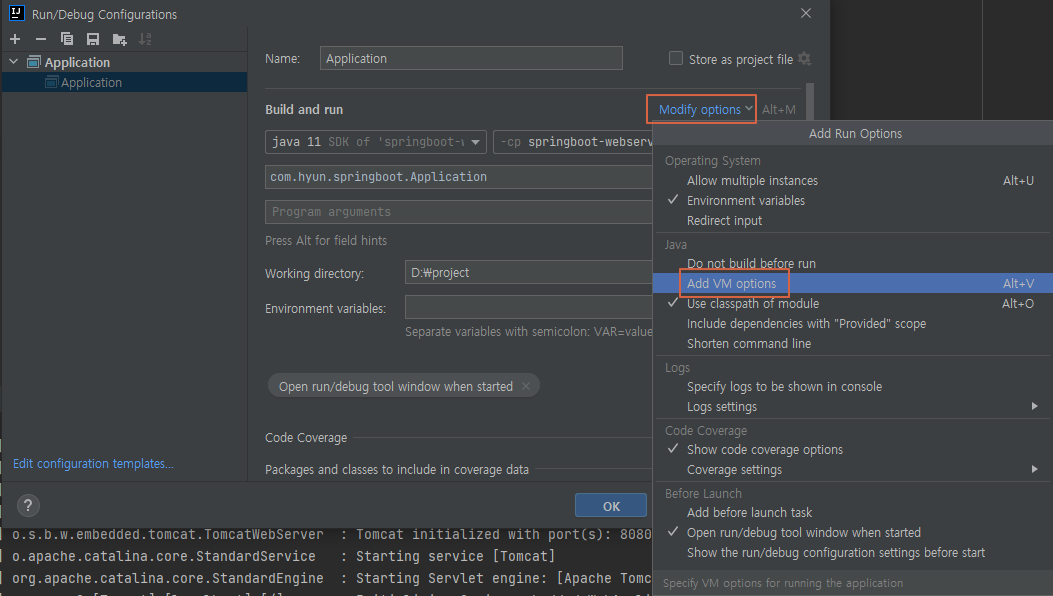 2. Modify options > Add VM options