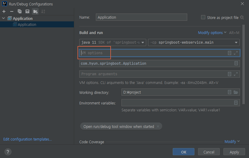 3. VM options란이 생성되면