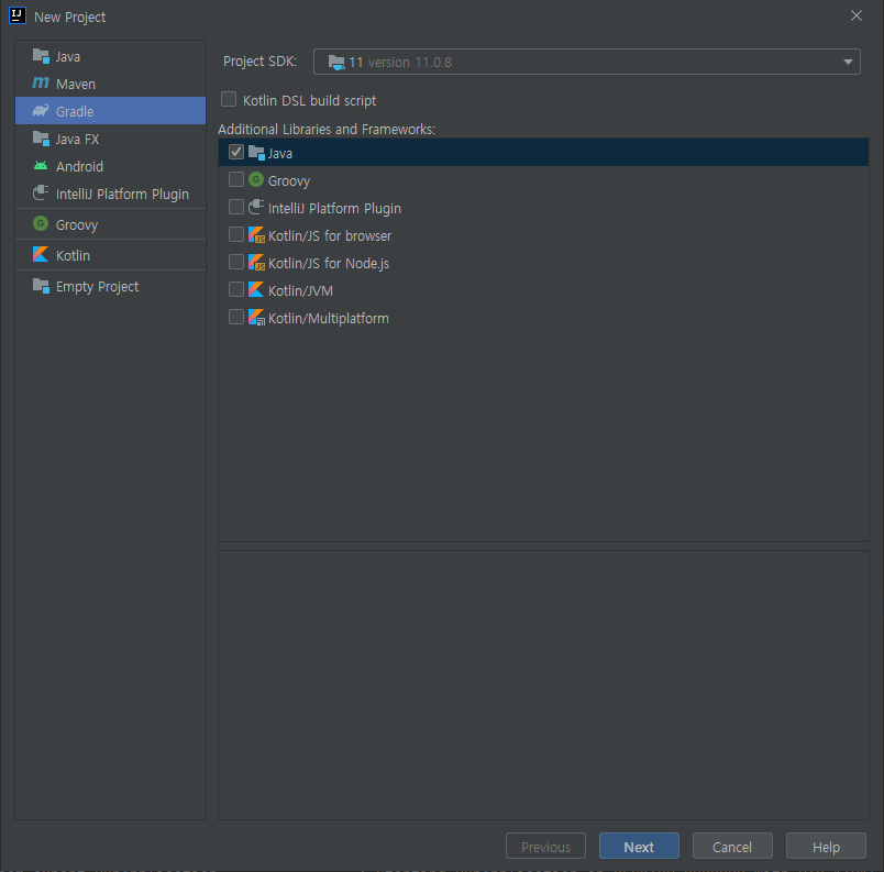 Gradle, Java 선택, Next