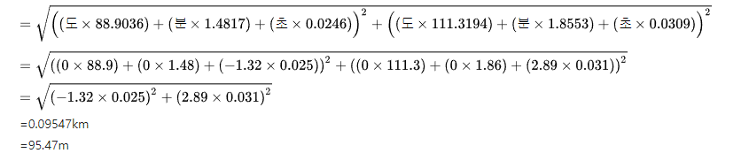 이 경우도 DMS 표현방식의 좌표로 계산하였다.