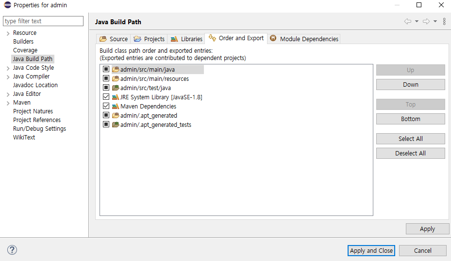 Eclipse에서 Maven 프로젝트를 import 했는데