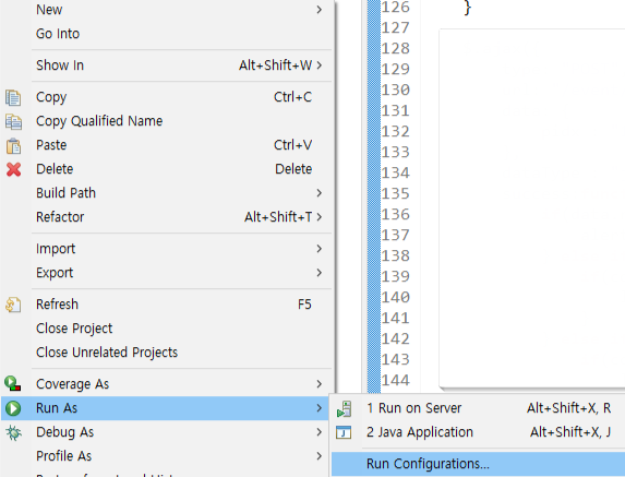 2. 프로젝트 우클릭 > [Run As] > [Run Configurations]