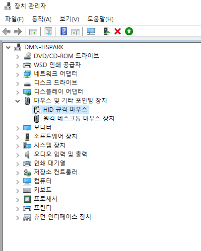 제어판 > 하드웨어 및 소리 > 장치관리자 . 마우스 및 기타 포인팅 장치