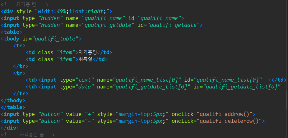 행 추가시 DOM객체 선택을 위한 ID는 tbody에 줬음