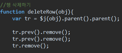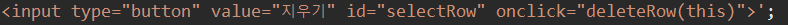 버튼에 deleteRow 함수를 걸고 this를 인자로 넘긴ㄷ.