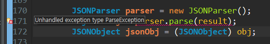 3. parser로 string 변환... 하려는데... unhandled exception 에러가 떠서 try catch를 해줬다 ㅠ ㅠ 거 참