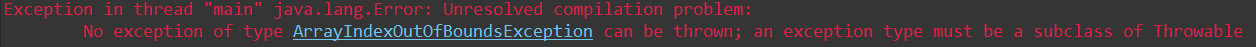 -> 같은 패키지 안에 ArrayIndexOutOfBoundsException이라는 클래스파일을 만들었어서 그랬다... ㅠ ㅠ