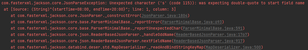com.fasterxml.jackson.core.JsonParseException: Unexpected character ('s' (code 115)): was expecting double-quote to start field name